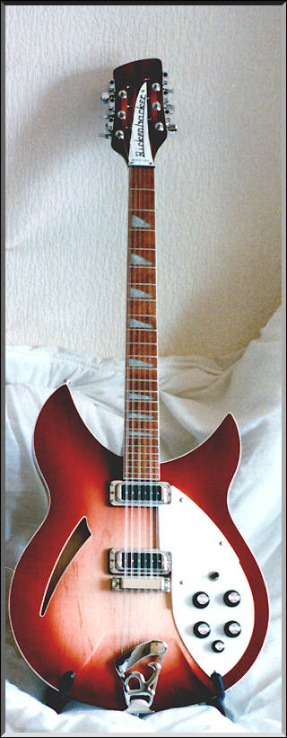 A 4003S8 in Jetglo from Feb '98 - the nut is a brass replacement, and the octave - to normal strings have been reversed in position - consequently very easy to play - twice I've taken this to gigs meaning to use it for one song, but it sounded so great I used it for the whole show.
